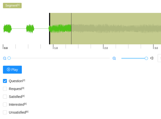Use the Labels control tag to label specific segments of the audio clip: